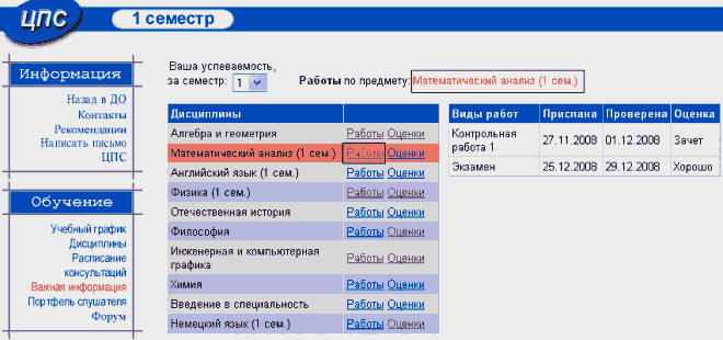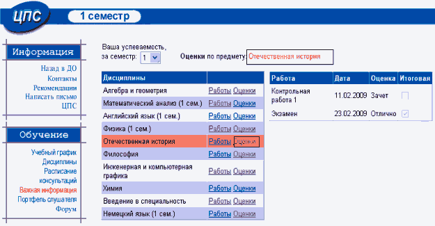 В этом разделе Вы можете контролировать свою успеваемость. Это своеобразная электронная зачетная книжка. Для контроля зайдите в раздел “Успеваемость”