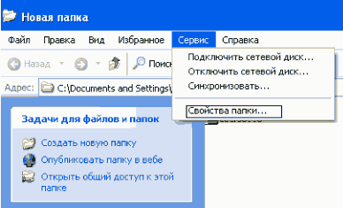 Чтобы изменить настройки в ОС WindowsXP необходимо открыть любую папку на компьютере выбрать последовательно: