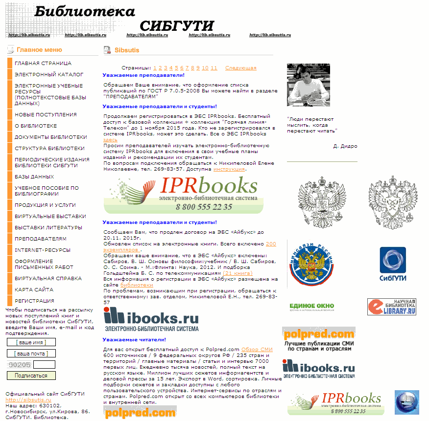 http://lib.sibsutis.ru/Также можно просмотреть адреса других сайтов по адресу http://lib.sibsutis.ru/links.php